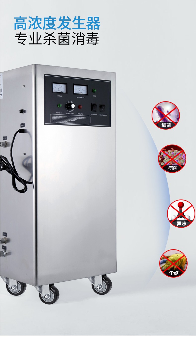 佳环HY-003-30A,30克水冷型臭氧产生器(qì) 设置装备摆设:30克线路板,30克产生管,气(qì)泵,电压(yā)表(biǎo),电流(liú)表(biǎo),浓(nóng)度调理旋钮,电源唆使灯,臭氧唆使灯,电源开关,电压(yā)唆使灯,紧密滤水体系、冷凝体系、枯燥体系、流(liú)量计,臭氧输入口,冷却水收支水口。