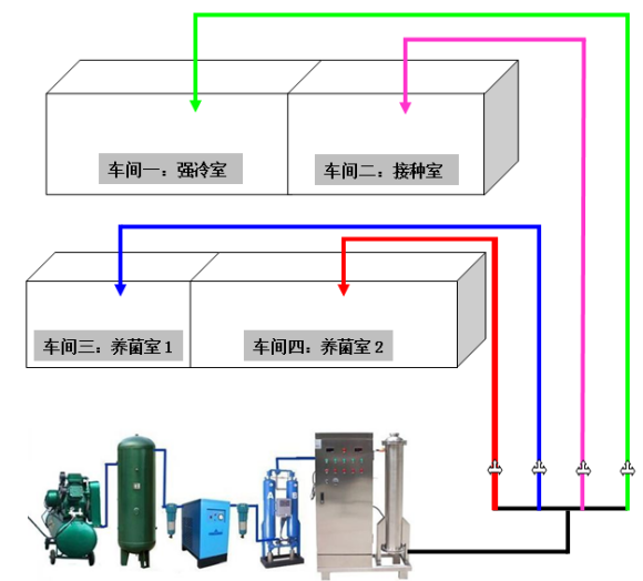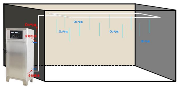 2.3热力管道喷淋泵 自动化(huà)设备安装在屋子外,在产线的上端、正反面隔墙或吊项层今天,安装PVC/不锈(xiù)圆钢管,在保送(sòng)生管上时间(jiān)开小眼,臭氧杀菌固体自幼眼通(tōng)入不同的屋子中(zhōng)。
