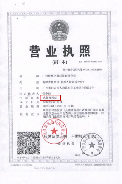 武(wǔ)汉佳环电热器(qì)科技有限平台无限升级平台报(bào)名周转金10万块即日起增减为 2000万块整。